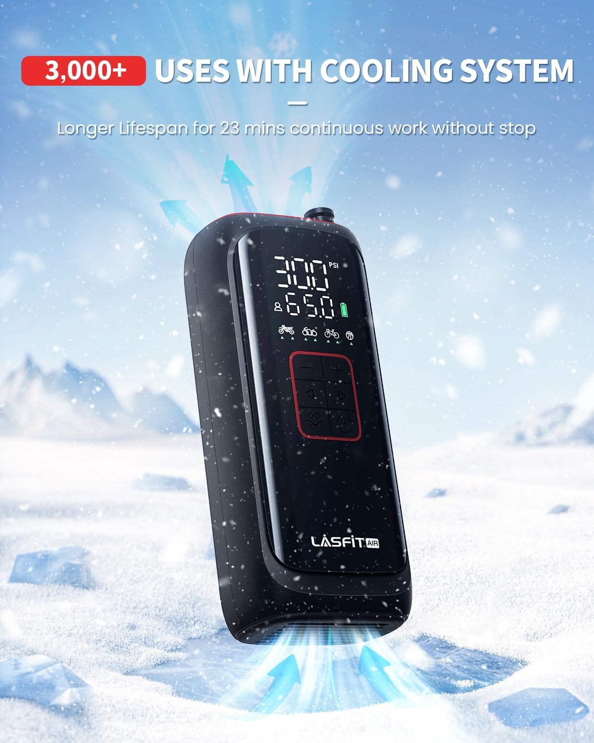 [2024 Upgraded] LASFIT AIR BM1 Bike Motorcycle Pump [20s Fast Inflation] 150PSI Electric Portable Tire Inflator w/Pressure Gauge, Auto Stop, Presta Schrader Valve with Power Kit