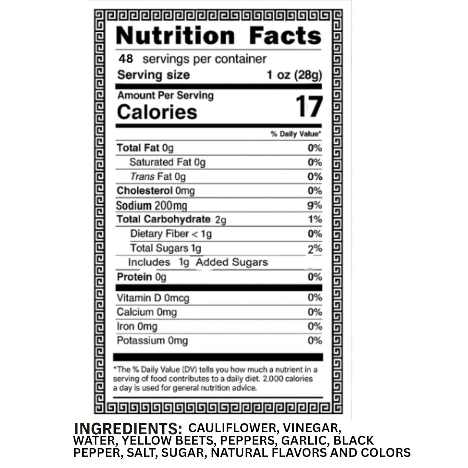 | Taste Description | Hot And Spicy Pickled Cauliflower With The Zesty Kick Of Cascabella Chili Peppers |